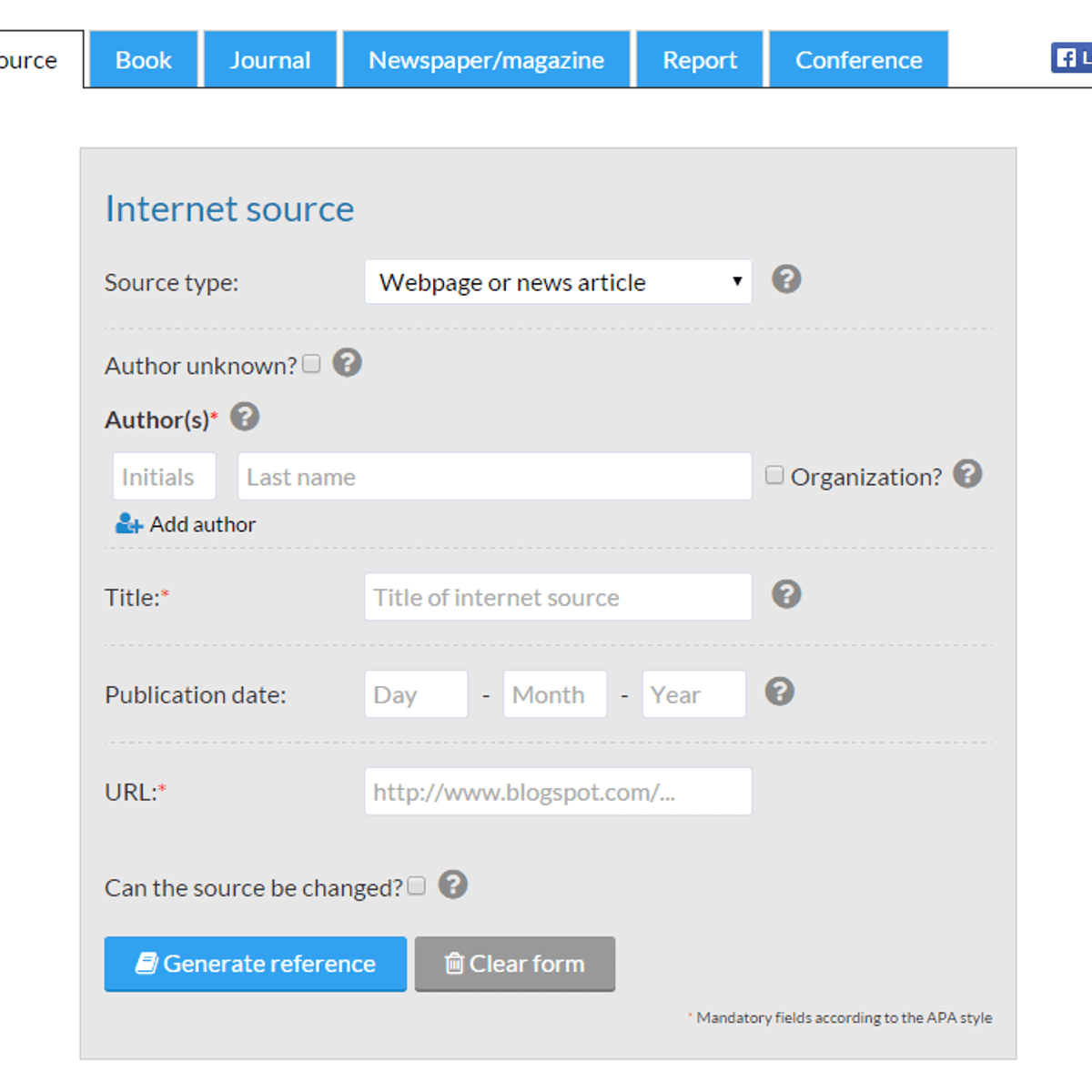 In APA Style, this description appears in brackets: [Chair of stained oak]. In MLA and Chicago styles, no brackets are used: Chair of stained oak. For social media posts, which are usually untitled, quote the initial words of the post in place of the title: the first characters in Chicago, or the first 20 words in APA. E.g. Biden, J Scribbr APA-Generator: Literaturverzeichnis einfach erstellen Erstelle deine erste APA-Quellenangabe Generiere ganz einfach Quellenangaben im Text sowie Literaturverzeichnisse. Buch Webseite Fachzeitschrift Kapitel aus einem Sammelband Zeitung Sonstige Welche Quelle willst du zitieren? Anleitung zu APA-Richtlinien Bewertet mit von 5 El generador APA de Scribbr genera automáticamente referencias precisas y citas en el texto de forma gratuita. Está guía de citación APA describe las reglas de citación más importantes de la 7ª edición del Manual de Publicaciones de la Asociación Americana de Psicología (APA), publicado en el Citas en el texto en formato APA Lo básico